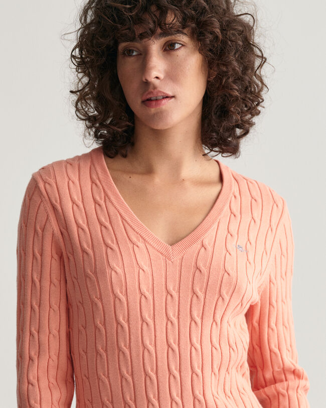 Stretch Cotton Cable Knit VNeck Sweater GANT