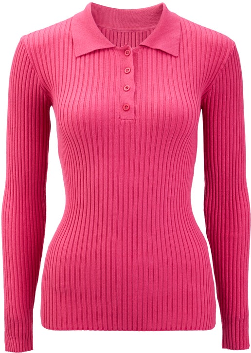 Women's Knitted Polo Top in Pink Flambe Postie